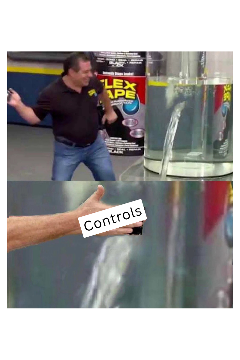 That’s controls in a nutshell. We’re often not the ones driving the boat, we’re the Flex Tape. Something’s broken? “Just slap some controls on it!”